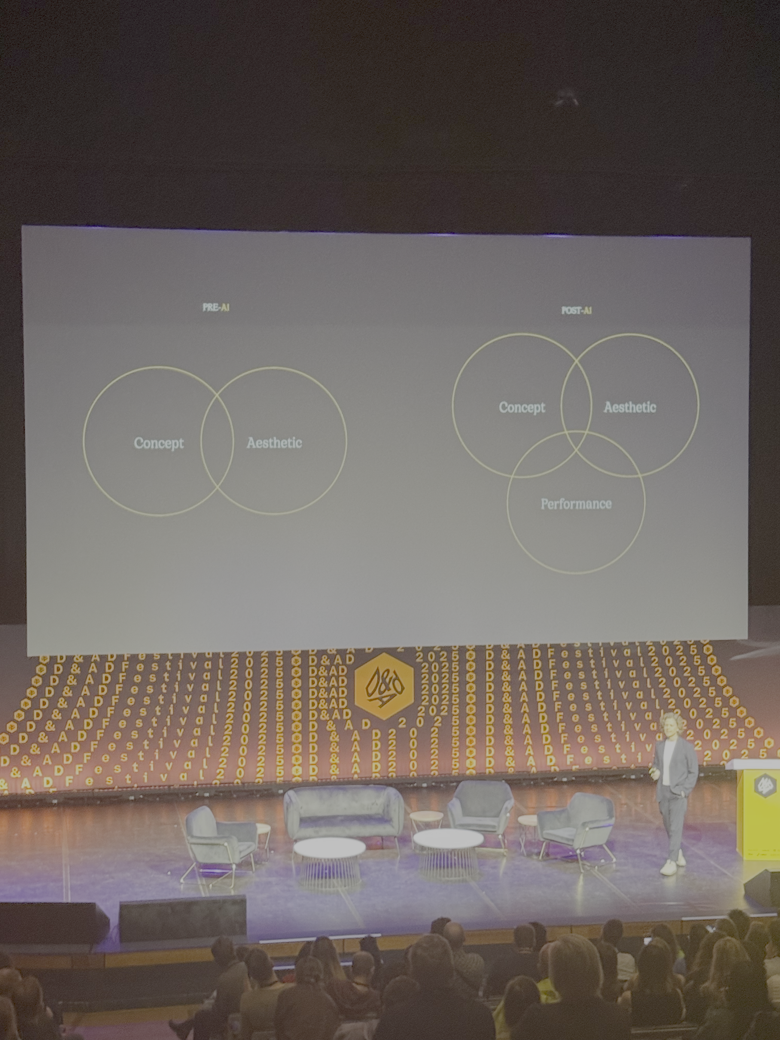 “And so I urge all of us to find new language to express the performance features of what we do, because that is what's going to matter going forward. When aesthetics becomes cheap, when iteration becomes so fast that clients don't know where to place the value anymore … we must focus on the idea of performance, which we've always done before, but it's now time for us to get credit for it.”